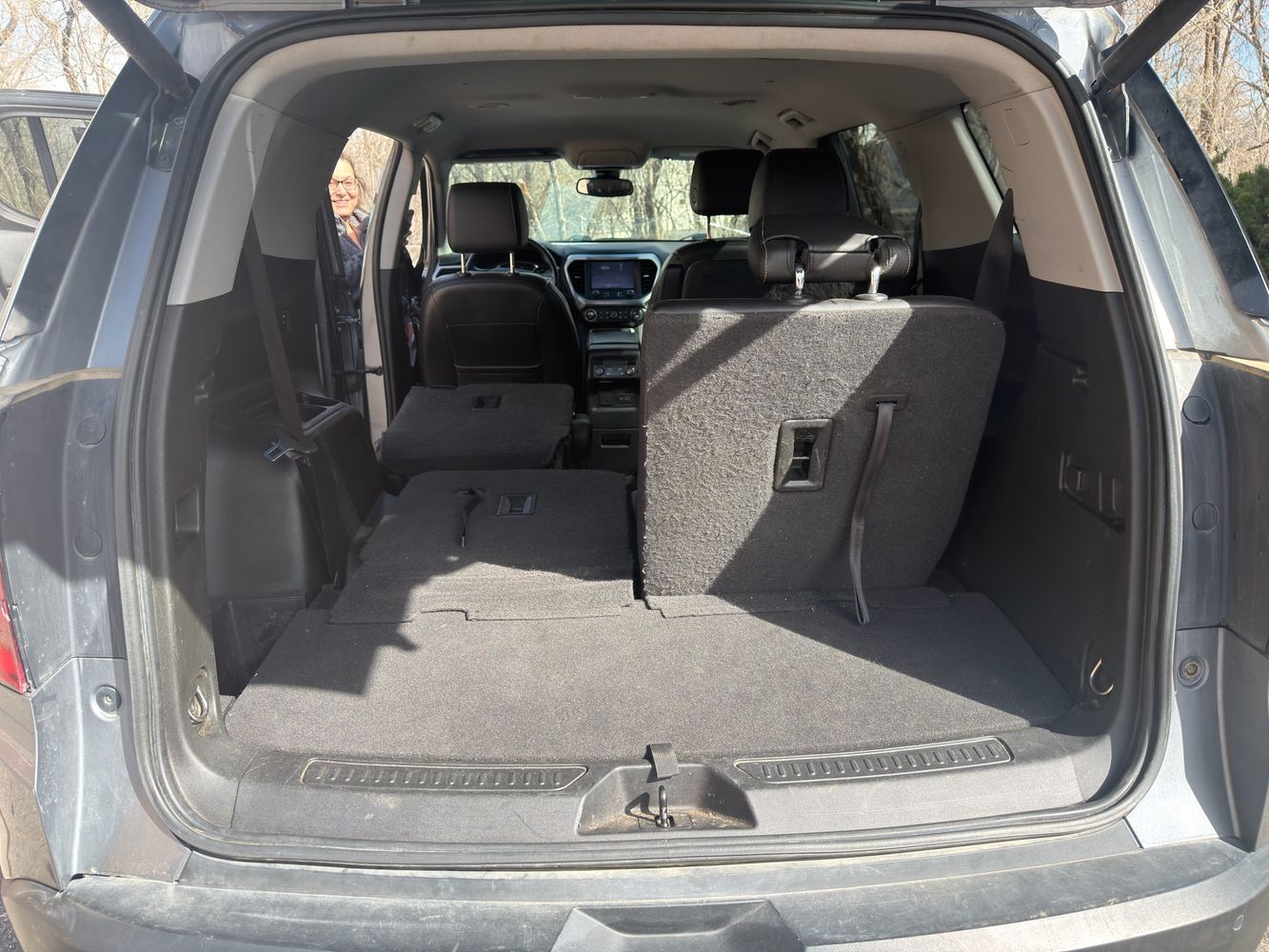 Third-row seatback upholstery: Carpet third-row seatback upholstery